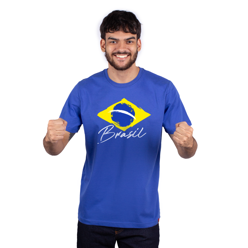 A Camiseta Brasil Torcida traz uma representação estilizada da bandeira brasileira com a escrita “Brasil”, criando um visual simples, marcante e perfeito para quem quer torcer pela seleção na Copa do Mundo. 🏆🇧🇷